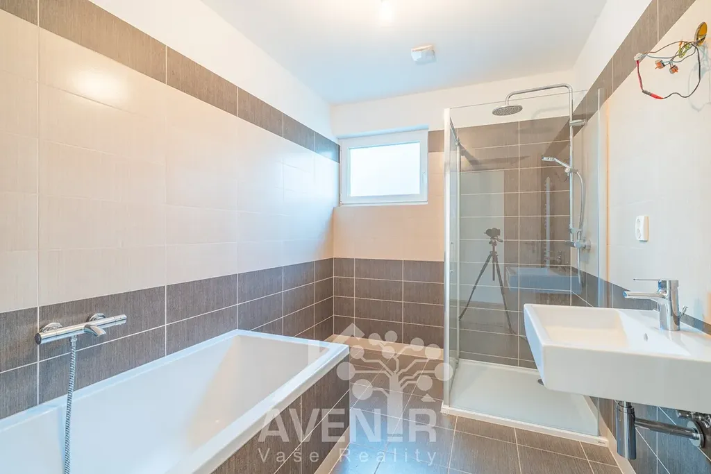 Velkou výhodou je koupelna s vanou i sprchovým koutem, takže si můžete každý den dopřát jak rychlou sprchu, tak relaxační koupel. V celém domě najdete jednotnou vinylovou podlahu, v technických místnostech a koupelně praktickou dlažbu. Nechybí ani šatna, technická místnost a spíž.