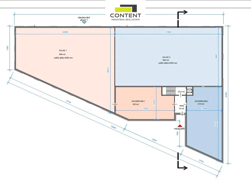 - zásobování TIR, vjezdy v úrovni vozovky, výška vrat 4m