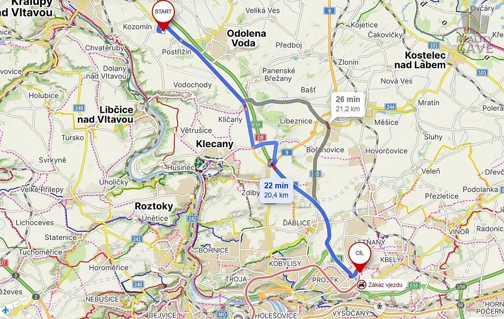 Lokalita: východní okraj obce (hranice Kozomín/Postřižín) mimo hustou residenční zástavbu