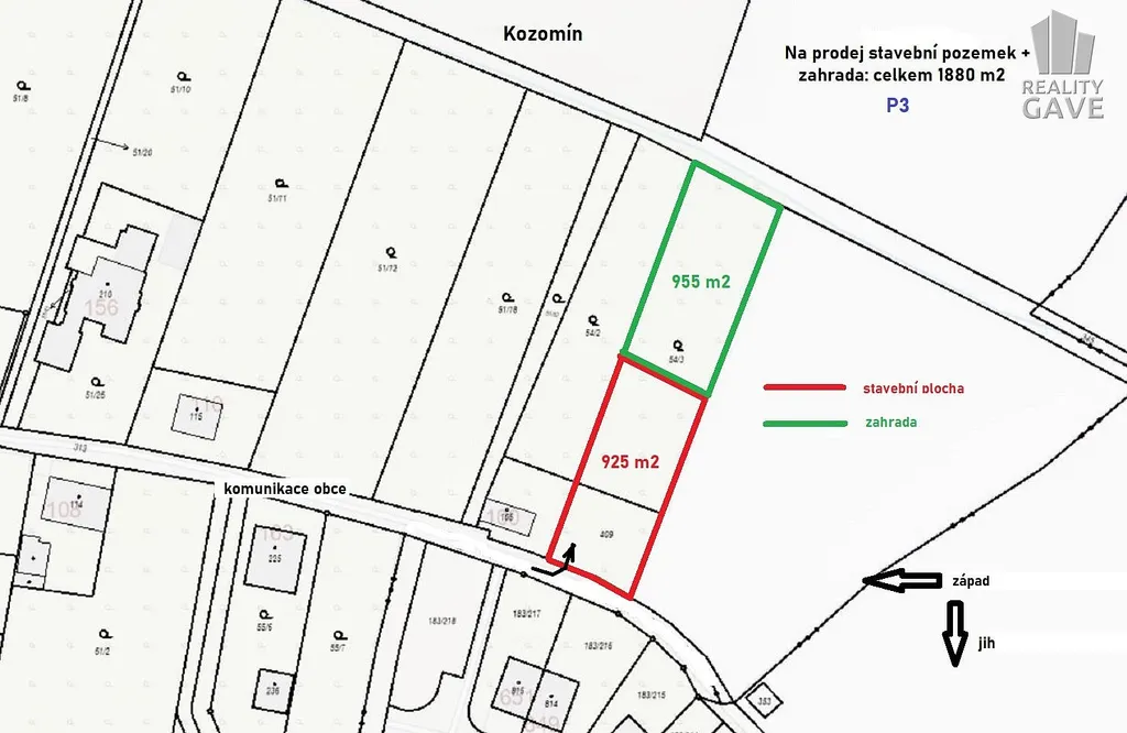 Nabízíme k prodeji stavební pozemek P3 určený k výstavbě rodinného domu (případně dvojdomu), nacházející se v klidné a vyhledávané lokalitě obce Kozomín. Pozemek má pravidelný tvar a je celodenně slunný, což umožňuje efektivní zastavění i výborné dispoziční řešení budoucí stavby.