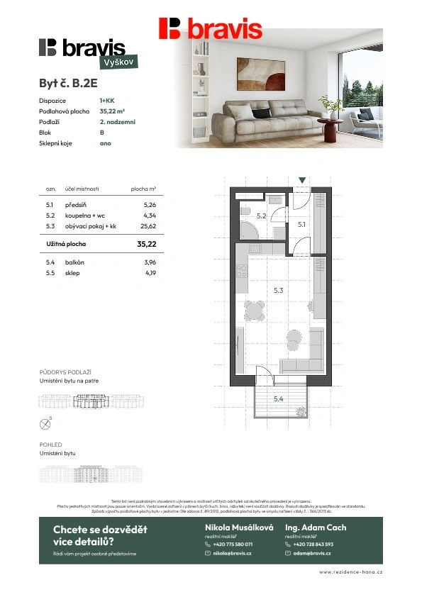 Neváhejte – právě teď můžete být u zrodu jedinečné nové čtvrti, která přináší moderní styl bydlení do Vyškova. Kontaktujte nás pro podrobnější informace, prohlídku nebo rezervaci tohoto krásného bytu. Rádi se s Vámi osobně setkáme a vše zodpovíme.