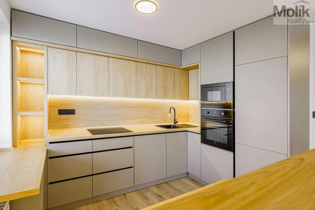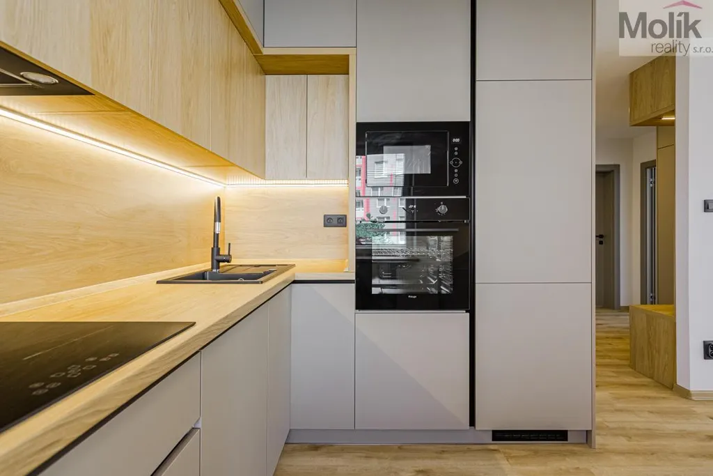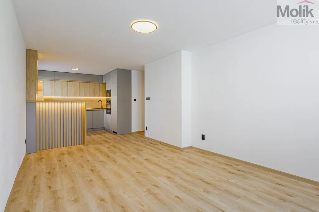 Po jejím dokončení bude byt odpovídat přiložené vizualizaci- moderní, světlý a kompletně zrenovovaný.