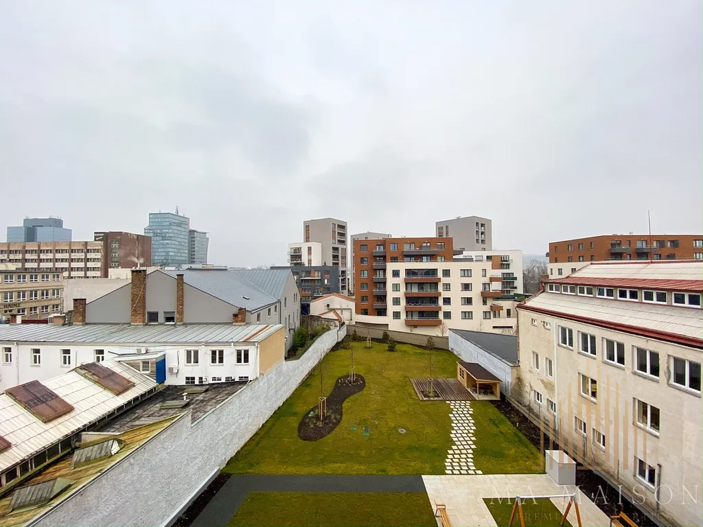 Nabízíme dlouhodobý pronájem bytu ve 3. patře moderního rezidenčního objektu s výtahem, sklepem, prostorným balkonem, garážovým stáním a zahradou ve vnitrobloku domu.