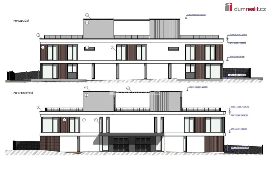 Dumrealit.cz Vám zprostředkuje koupi rovinatého stavebního pozemku plochy 909m² určeného pro výstavbu dvojdomu o užitné ploše 333,5m², se sklepními prostory 166,1m² a střešními terasami plochy 102,2m². Pozemek je obdélníkového tvaru s plánovaným vjezdem z ulice Davídkova, Praha 8. Nachází se na kopci v místě, kde svah pozvolna přechází do roviny. Na výstavbu dvojdomu již bylo v roce 2025 vydáno územní rozhodnutí. Směrově je situován zejména na jih a sever. Dům "A" má užitnou plochu 159,0m², plus sklepní prostory 78,8m² a střešní terasy 47,7m². Dům "B" má užitnou plochu 174,5m², plus sklepní prostory 87,3m² a střešní terasy 54,5m². Jedná se vždy o dvě obytná nadzemní podlaží a střešní ateliér se dvěma terasami pro každý dům. V 1. NP se nachází hala, koupelna a obývací pokoj s kuchyňským koutem, dále garáž. Ve 2. NP se nachází tři ložnice a prostornější koupelna. Ve 3. NP se nachází střešní ateliér se vstupy na dvě terasy, z nichž bude krásný výhled na Prahu. V celé ploše půdorysu domu je podzemní podlaží s výškou stropu 2,55m se širokým potenciálem využití na kanceláře, skladové prostory, tělocvičnu, posilovnu, herny apod..