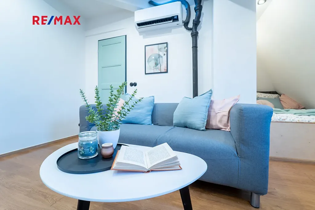 Byt se nachází v nejvyšším patře bytového domu, takže nabízí příjemné světlo, vzdušnost a výhled, které u malometrážních bytů nebývají samozřejmostí.