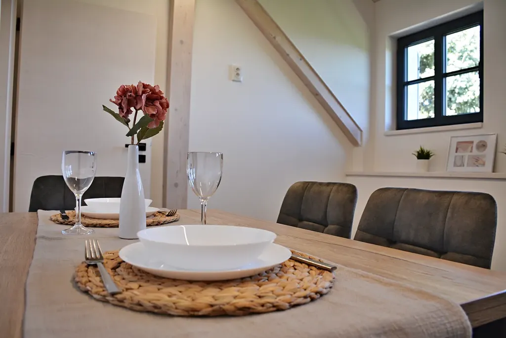 Okna jsou orientována do zahrady, která poskytuje příjemný klid a soukromí.