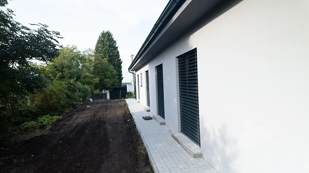 Dům je ve fázi těsně před dokončením - interiéry jsou hotové a nemovitost je připravena k nastěhování. K úplnému dokončení však chybí vybudování parkovacích stání a osazení vjezdových vrat, které si může majitel doladit dle vlastních představ a část plotu z ulice. Na tyto úpravy je potřeba počítat s investicí přibližně 500 000,-Kč.