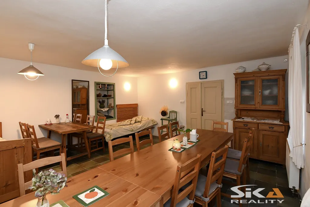 Nabízíme Vám k prodeji výjimečný, plně funkční penzion s kavárnou, terasami, svatební stodolou, víceúčelovou stavbou a upravenou zahradou, který se nachází v obci Peruc – pouhých 40 km severozápadním směrem od Prahy a cca 12 km od budoucí dálnice D7. Objekt je umístěný v severní okrajové části obce, v bezprostřední blízkosti známého Oldřichova dubu, který získal v roce 2025 ocenění Strom roku a obklopují ho dva nově zrekonstruované rybníky. Pozemek o celkové výměře 1.893 m2 je částečně zastavěn rodinným domem a stodolami, celý objekt je kompletně zrekonstruovaný v letech 2012–2014. Dispoziční řešení bylo navrženo tak, aby objekt umožňoval více způsobů využití – rodinné bydlení, penzion, gastro provoz nebo pořádání akcí. V současné době se využívá jako rodinný penzion s kapacitou 11 lůžek a zavedenou kavárnou. Vedlejší stavby jsou vhodné pro menší svatby, rodinné oslavy, firemní setkání či kulturní akce (divadla, trhy, výstavy aj.) Všechny budovy jsou ve velmi dobrém technickém stavu, pravidelně pečlivě udržované. Objekt je napojen na veškeré IS, voda z veřejného řádu je rozvedena i po zahradě, odpady svedeny do tlakové kanalizace, elektrická energie 240/400 V (jističe 3 x 16 A), vytápění celého objektu zajištuje plynový kotel a ohřev vody bojlery. Internet připojený na původní pevnou telefonní linku, v současné době probíhá jednání o připojení na optický kabel. Peruc nabízí kompletní občanskou vybavenost – školu, školku, poštu, obchody, lékaře, zubaře, kino, koupaliště a zároveň možnosti sportovního i kulturního vyžití. Obec je obklopena lesy a představuje ideální místo jak pro bydlení, tak pro turistiku i rekreaci. Podrobnější informace Vám rádi sdělíme při osobní prohlídce nebo v RK. Vzhledem ke skutečnosti, že PENB se právě vyhotovuje, uvádíme třídu energetické náročnosti G.
