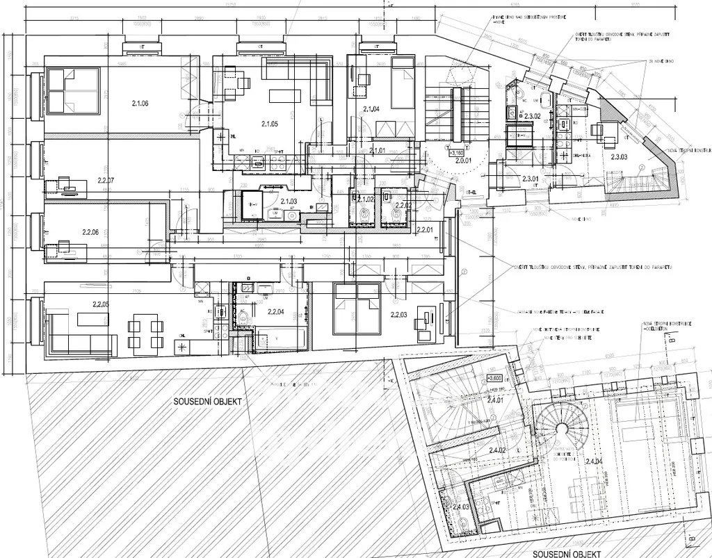 Navrženými stavebními úpravami vzniknou jednotky o dispozicích: 2x 2+kk, 4x 3+kk, 1x 1+1, 1x 4+kk, 1x ateliér. SP umožňuje realizaci výstavby ve 3 fázích.