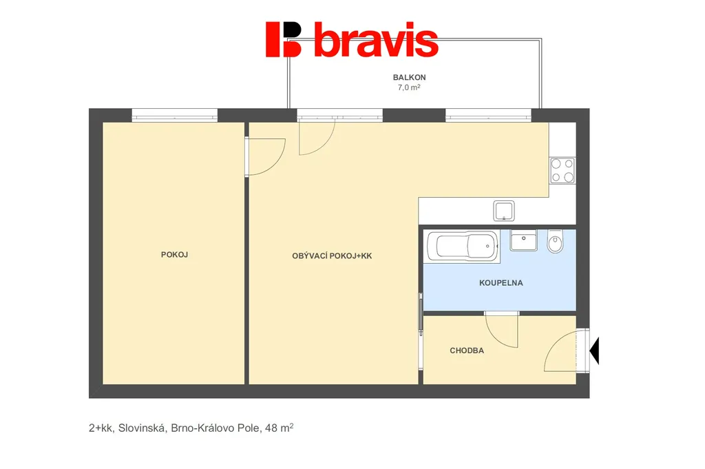 Ve výhradním zastoupení majitele nabízíme k pronájmu byt o dispozici 2+kk s balkonem, možností parkování ve vnitrobloku a sklepem v klidné lokalitě s výhledem do zeleně v Brně - Králově Poli na ulici Slovinská.