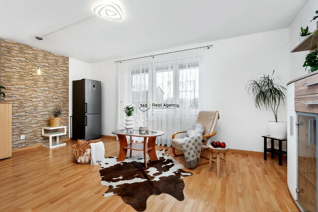 Byt je ve velmi dobrém technickém stavu a nevyžaduje žádné investice. Dispozici tvoří prostorný obývací pokoj s kuchyňským koutem (26,19 m²), ložnice (14,26 m²), koupelna s WC (3,96 m²) a předsíň (4,38 m²). Díky velkým oknům a západní orientaci je interiér velmi světlý a vzdušný. Standard dále zahrnuje plastová okna s dvojskly, plovoucí podlahy a dálkové vytápění.