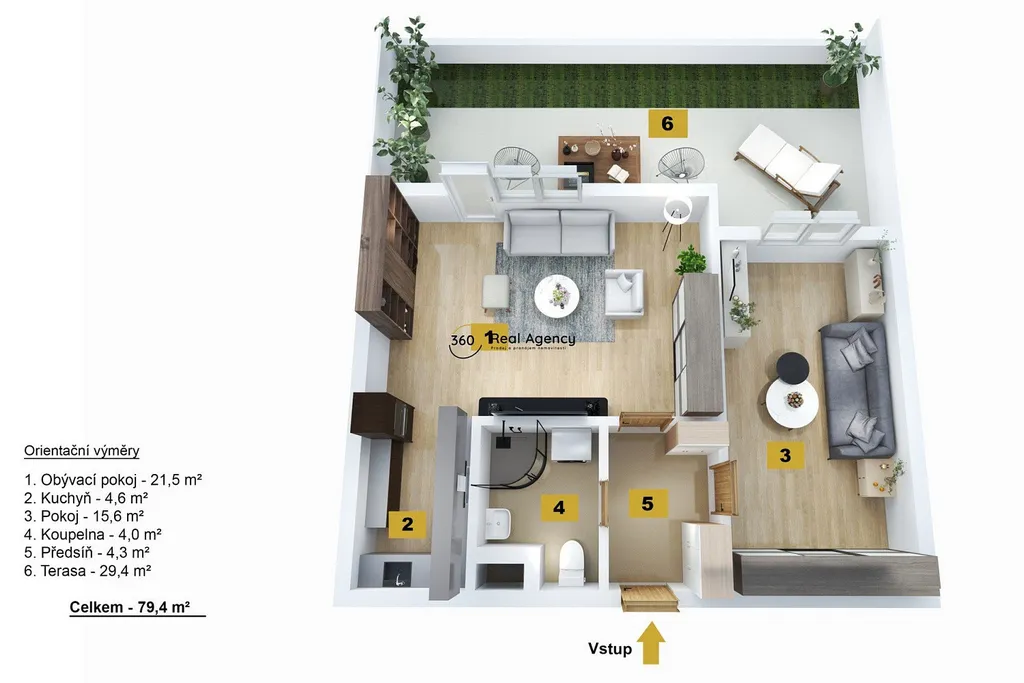 Nabízím k prodeji moderní byt 2+kk o výměře 48,79 m², který se nachází ve zvýšeném přízemí cihlového domu z roku 2011 v žádané části Prahy – Vinoři. Velkým benefitem je soukromá terasa o výměře 14,59 m² a zahrádka 18 m², orientovaná na západ, která není započítána do podlahové plochy bytu.