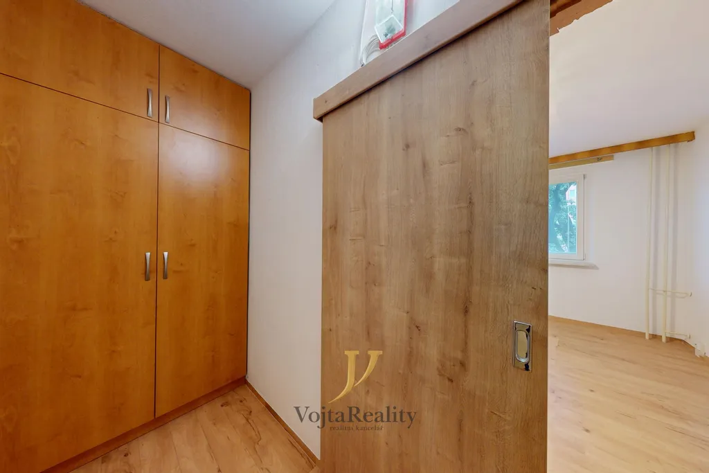 Byt je po částečné rekonstrukci. Byly provedeny nové obložky a interiérové dveře, položeny plovoucí podlahy, zrekonstruována elektroinstalace v kuchyni a koupelně a vybudována zcela nová koupelna. Dispozičně je řešen velmi prakticky – ze vstupní chodby je přístup do koupelny s WC, umyvadlem, vanou a místem pro pračku. Na chodbu navazuje prostorný obývací pokoj, ze kterého se vchází do kuchyně vybavené linkou se spotřebiči a dále také do samostatné ložnice. Součástí bytu je i sklepní kóje, která nabízí dostatek úložného prostoru.