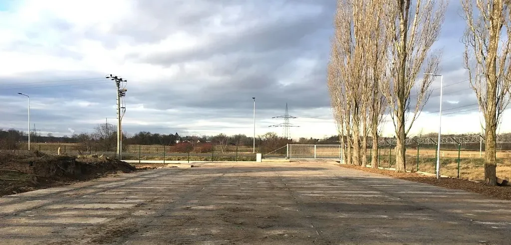 Pronájem zpěvněné plochy (panel) 650 m2. Vjezd přímo z hlavní silnice, dobrá vodotelnost. Příjezd kamionu možný. Osvětlení. Automatická vrata, ostraha areálu 24 hodin.