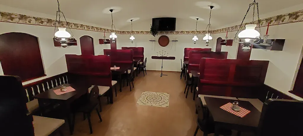 Vstupní chodba se schodištěm a prostorná hlavní místnost s barem nyní fungující jako vinárna ( kapacita 40 osob),samostatná kuchyně, samostatné toalety. Nad celým prvním podlažím se ještě nachází využitelná půda.