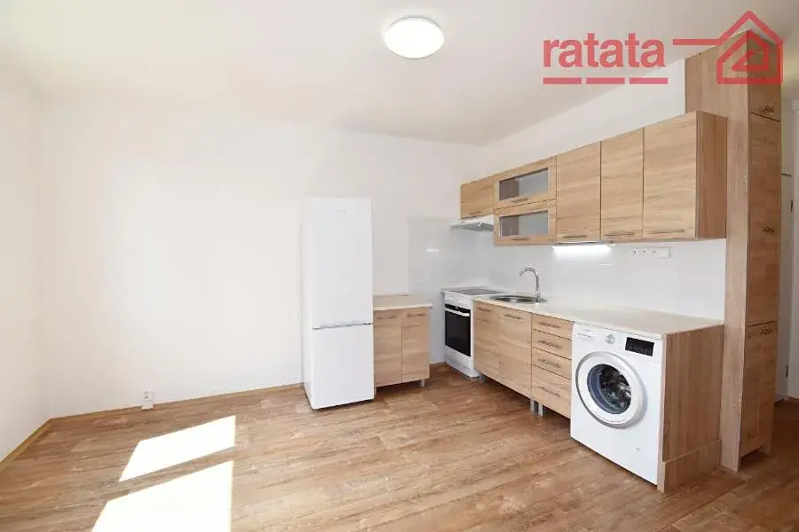 Je zde nová kuchyňská linka, el. deska + trouba, pračka, lednice, vestavěná skříň, vana s umyvadlem a zrcadlem, WC. Na podlahách je položeno lino a dlažba. Byt je volný k nastěhování od 1.1.2026.