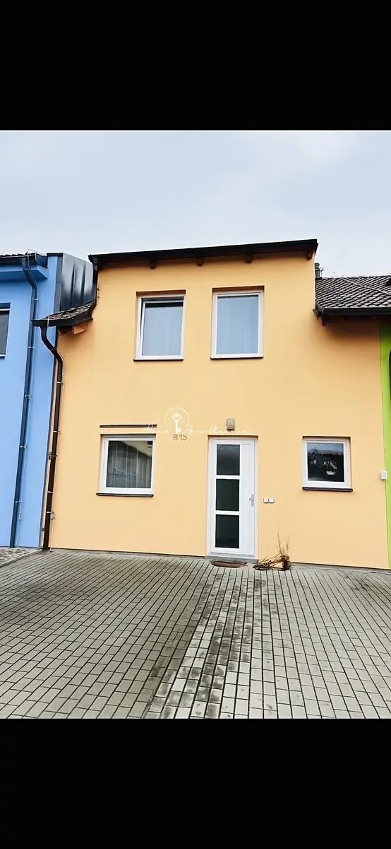 v 1. patře řadového cihlového domu, ve kterém se nachází pouze 2 bytové jednotky. Byt má výměru 55 m2. Součástí bytu je komora a menší půda s úložným prostorem. Přímo před domem je vyhrazené parkovací stání, další parkování je možné v ulici.