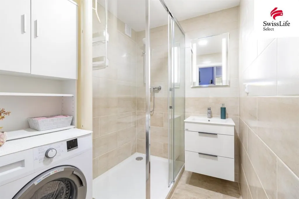 Interiér o výměře 60 m je vybaven novým luxusním nábytkem a kvalitními spotřebiči, které jsou součástí prodeje a nikdy nebyli použity. Nový majitel získává plně připravené, elegantní a nadstandardní bydlení bez nutnosti dalších investic.