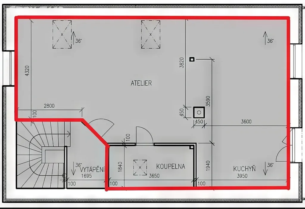 Byt je dispozičně řešen jako ateliér – otevřený prostor bez příček zahrnuje obývací část s krbovými kamny, kuchyňskou linku se spotřebiči (bez lednice), jídelnu a ložnici. Dále se zde nachází předsíň s plynovým kotlem a koupelna se sprchovým koutem a toaletou. Součástí bytu je balkon s příjemným výhledem do zahrady.