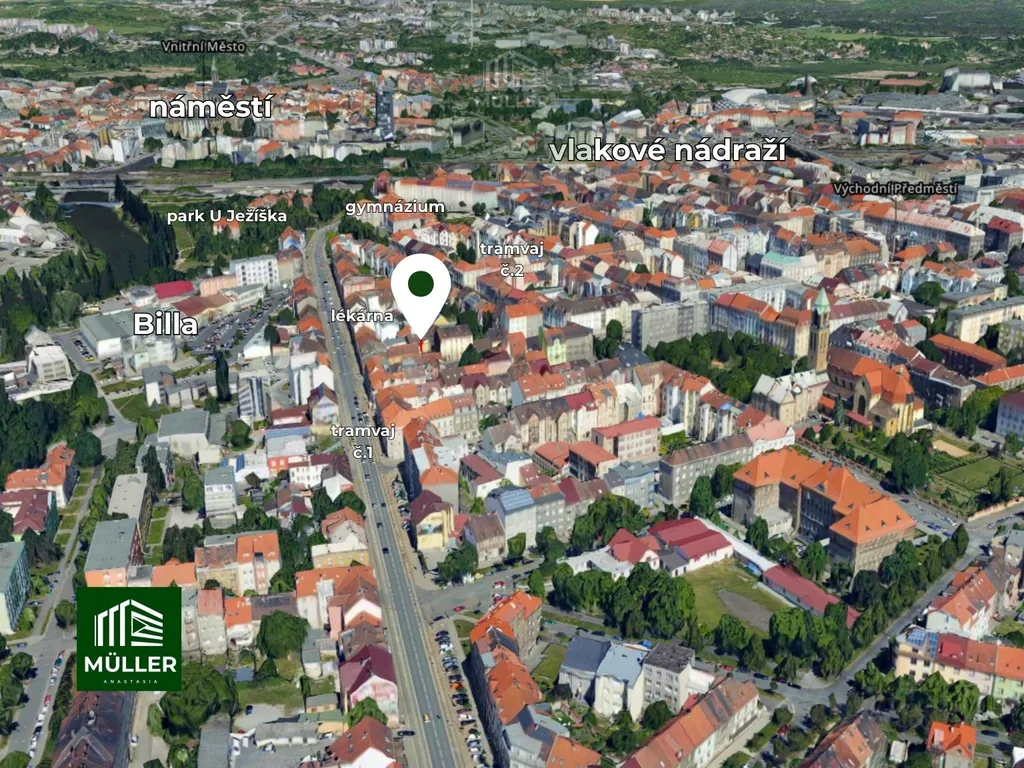 Nemovitost se nachází přímo u tramvaje, v docházkové vzdálenosti od obchodů, parku a všech služeb.