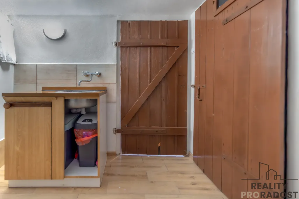 Částečně rekonstruovaný dům je zajímavě řešený 3+1 s vlastním vchodem, na konci vydlážděného dvorku je samostatná jednotka nejlépe pro větší dítě - děti s vlastní velkou koupelnou, toaletou, dřezem a pěkným pokojíčkem přístupným přes schůdky a sklepem.