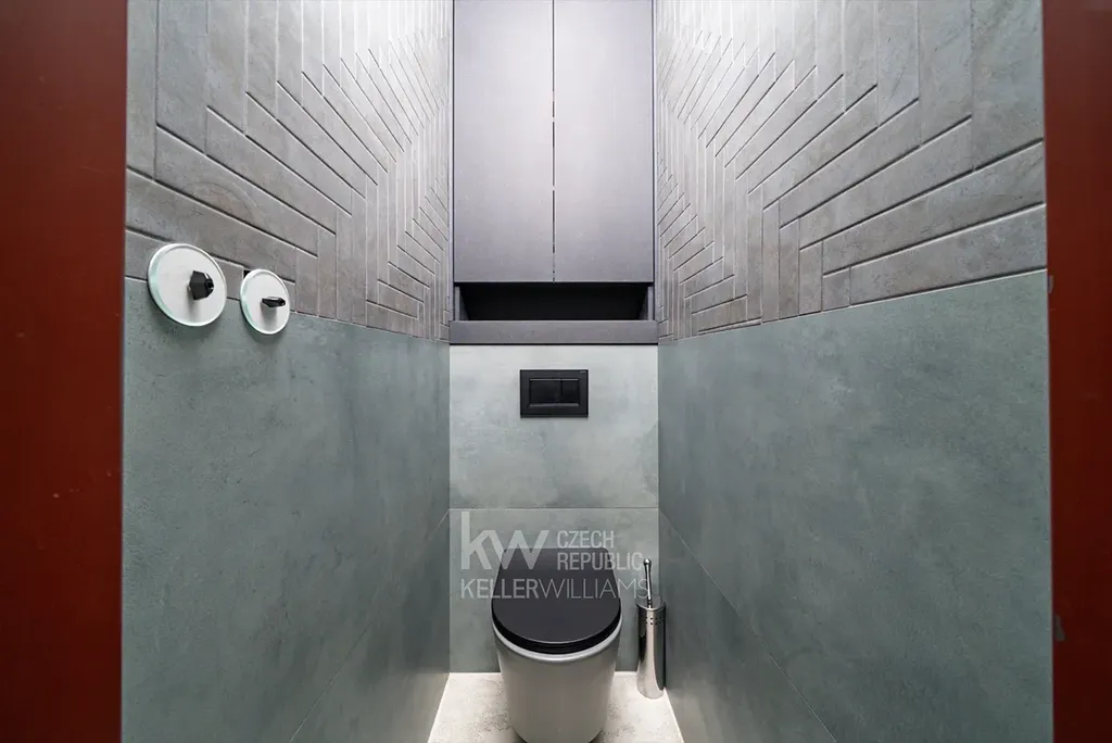 Koupelna je se sprchovým koutem a má vestavnou skříň, kde schováte čisté ručníky, či cokoliv na úklid. Toaleta je samostatná. A disponuje vlastní vestavnou skříní pro toaletní potřeby. Zádveří bytu, má zas nástěnné botníky a háčky, kam pověsíte bundy a kabáty.