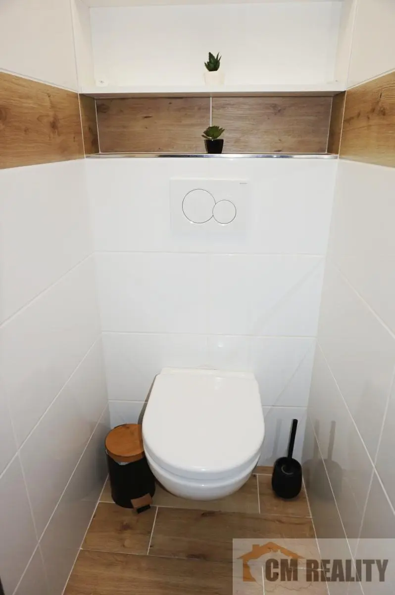 Byt má velmi dobrou dispozici s neprůchozími prostornými pokoji a prostornou kuchyní, která je po změně dispozice bytu propojena s obývacím pokojem. Po vstupu do bytu Vás uvítá prostorná široká chodba s velkým botníkem hned u vstupu a velkou vestavěnou šatní skříní v zadní části chodby. V koupelně je vana se skleněnou zástěnou a umyvadlo se skříňkou. V kuchyni je kuchyňská linka na míru s vestavěnými spotřebiči. Byt prošel celkovou nákladnou a velmi zdařilou rekonstrukcí. Nové podlahy, nová elektroinstalace, nábytek a stolářské dekorační prvky jsou zhotoveny na míru, vč. praktického pracovního koutu v obývacím pokoji. Koupelna a WC jsou také po celkové rekonstrukci (nové odpady, zařizovací předměty, obklady, dlažba). V ložnici byla změnou dispozice vybudována menší šatna.