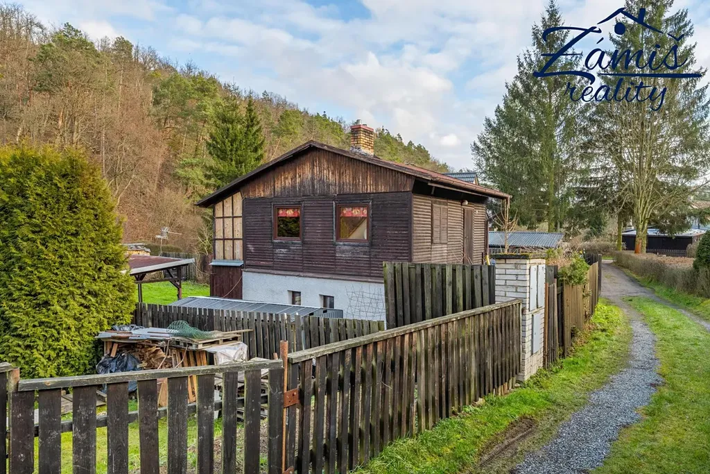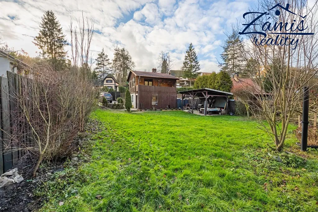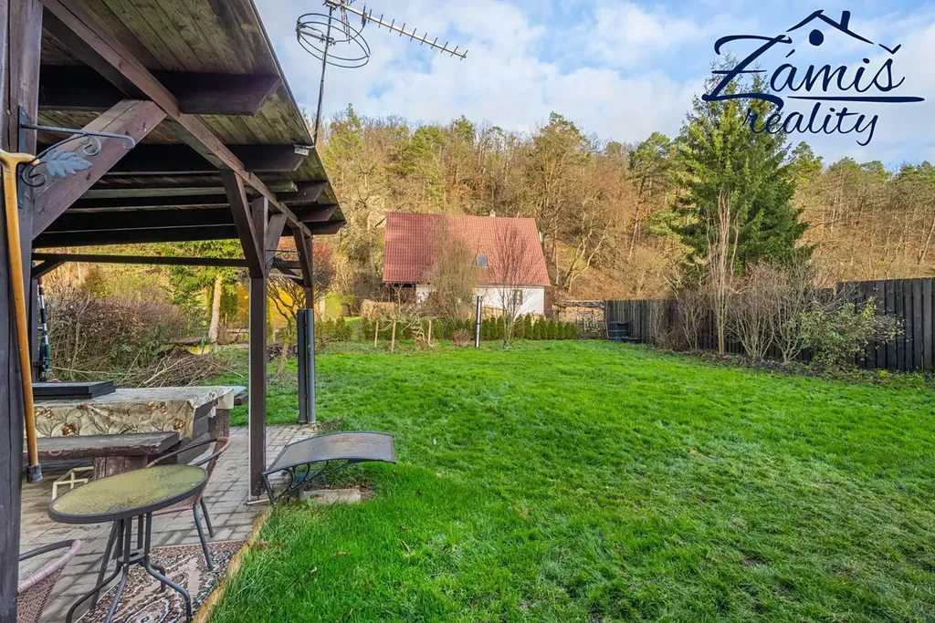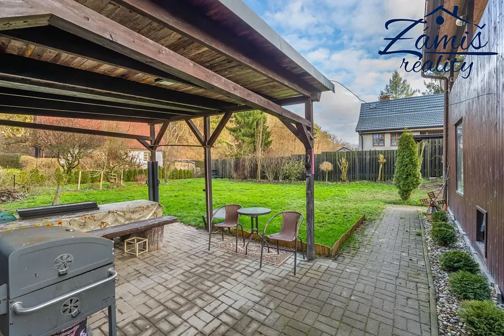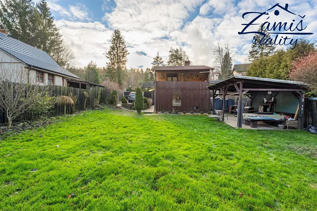Na zahradě je postaven přístřešek, který určitě využijete třeba při letním grilování. Za chatou je také plechový sklad, kde schováte spoustu věcí.