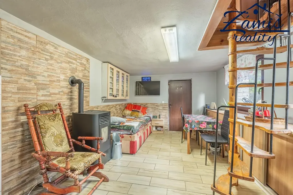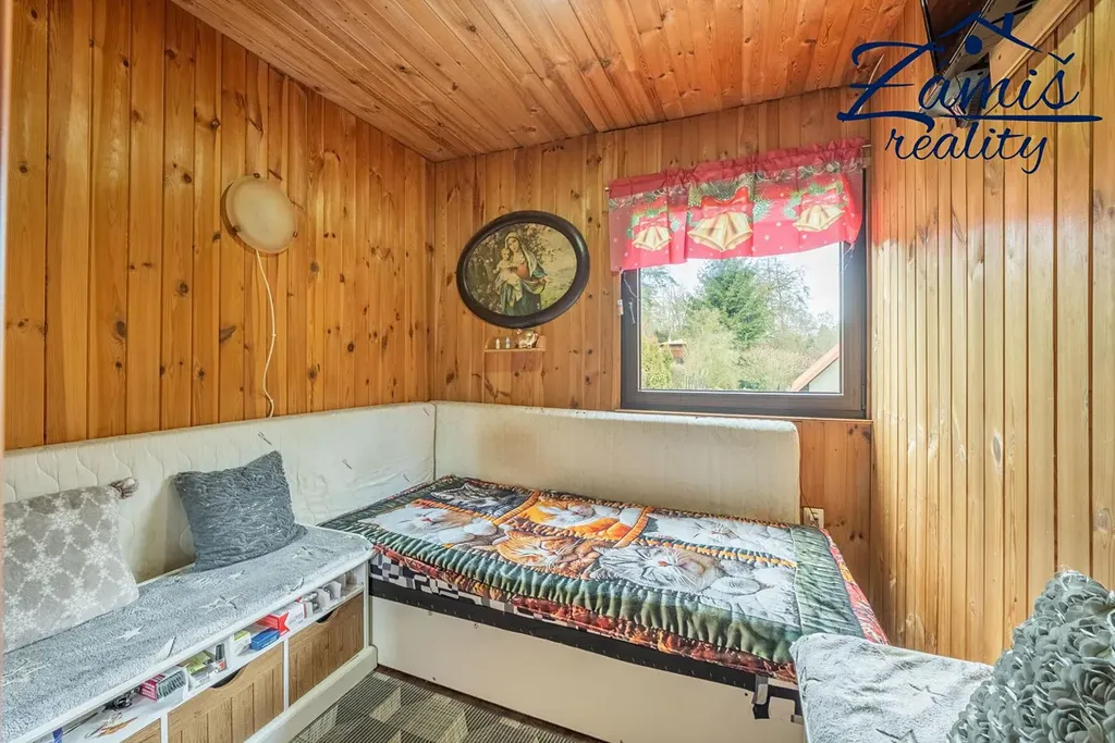 Chata má v přízemí pokoj s kuchyňským koutem, předsíň a dílnu. V patře je ložnice, koupelna s WC a další pokoj, ze kterého vyjdete na velkou lodžii s výhledem do zahrady.