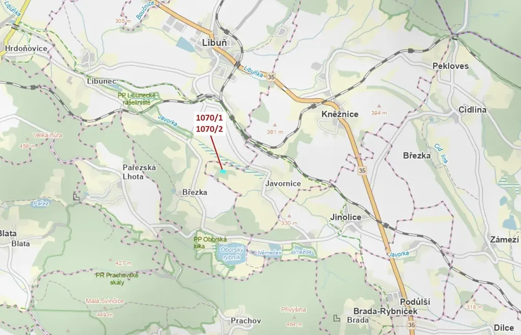 Lesní pozemky o výměře 2271 m2, parcelní čísla 1070/1, 1070/2, podíl 1/1, katastrální území Kněžnice, obec Kněžnice, obec s rozšířenou působností Jičín, okres Jičín, Královéhradecký kraj. Po těžbě.