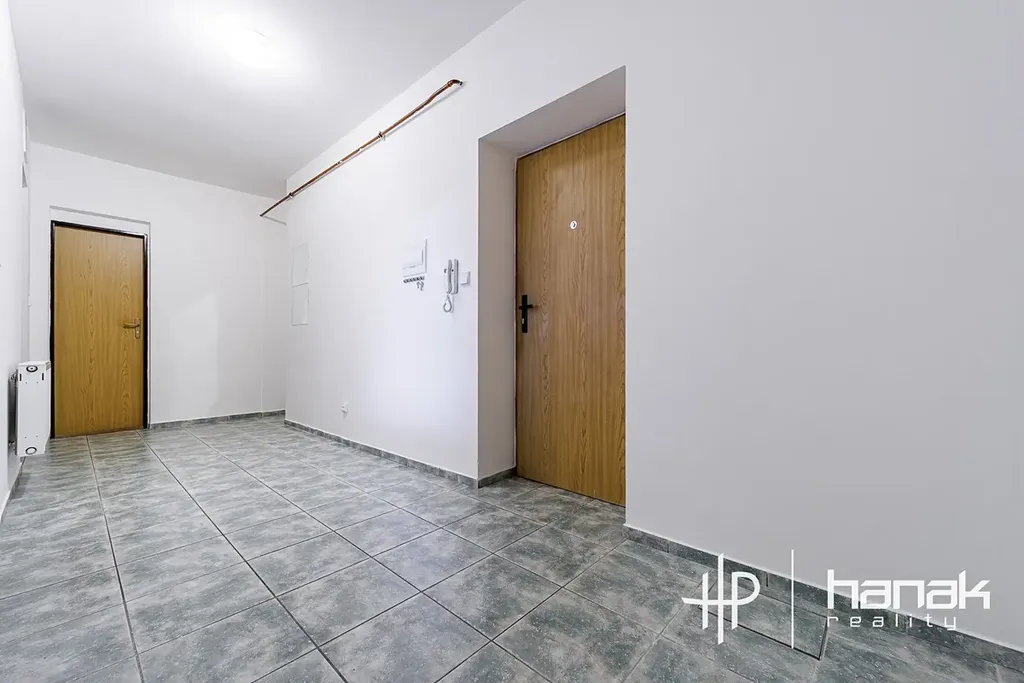 Byt má prostornou vstupní chodbu, kde je pohodlně místo pro velkou šatní skříň, botník a další drobnosti. Z chodby se vstupuje do samostatného wc s umyvadlem, koupelny a obývacího pokoje. V koupelně je sprchový kout, umyvadlo, plynový kotel a prostor pro pračku se sušičkou. Obývací pokoj s kuchyňským koutem má okna orientována směrem do zahrady. Po pár schodech se z obývacího pokoje vstupuje do ložnice, která má původní klenbový strop.