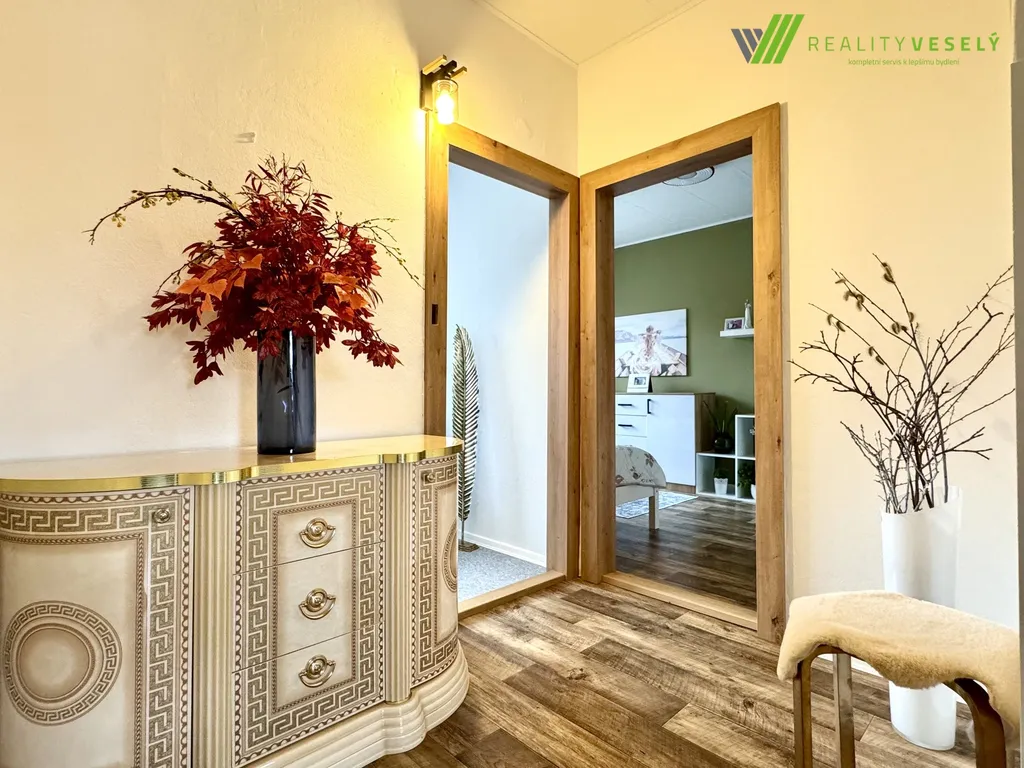 Při vstupu do bytu Vás přivítá chodba, kde se na pravé straně nachází krásná a útulná koupelna s vanou, která je ideální pro milovníky dlouhých koupelí i rodiny s dětmi. Vedle ní je situována samostatná toaleta. Na levé straně při vstupu do bytu se nachází průchod do první ložnice. Její součástí je i praktická chodbička s vestavěnými skříněmi, které poskytují dostatek úložného prostoru.