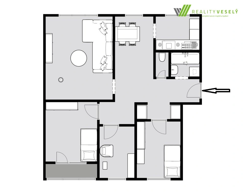 Srdcem bytu je velkorysý obývací pokoj, který bude jistě centrem společných rodinných chvil, místem pro odpočinek i zábavu. Poslední místností v bytě je samostatná kuchyně s novou kuchyňskou linkou a spotřebiči, která poskytuje plnohodnotné zázemí pro vaření i každodenní fungování rodiny.