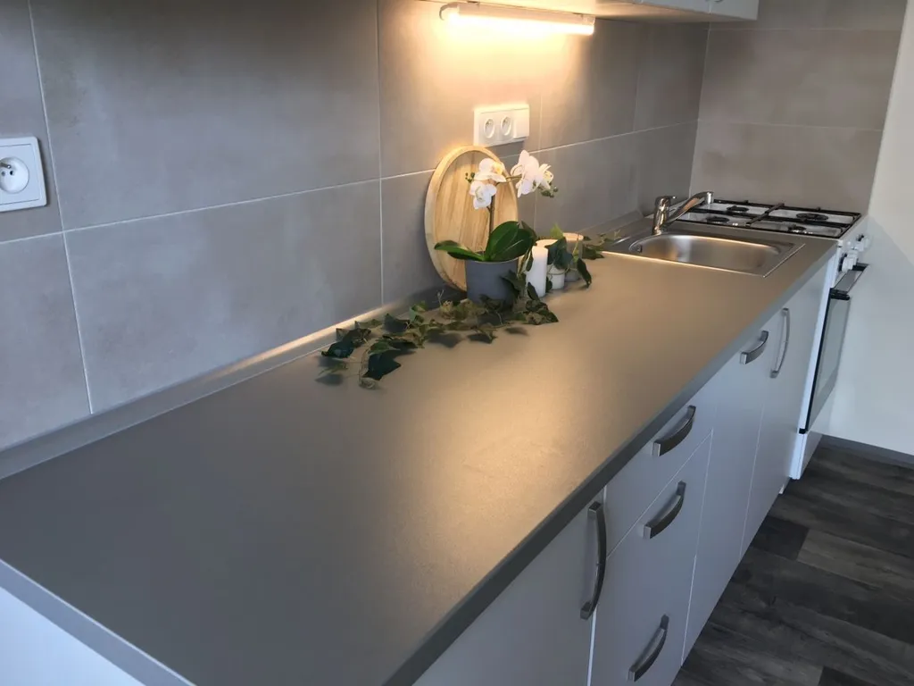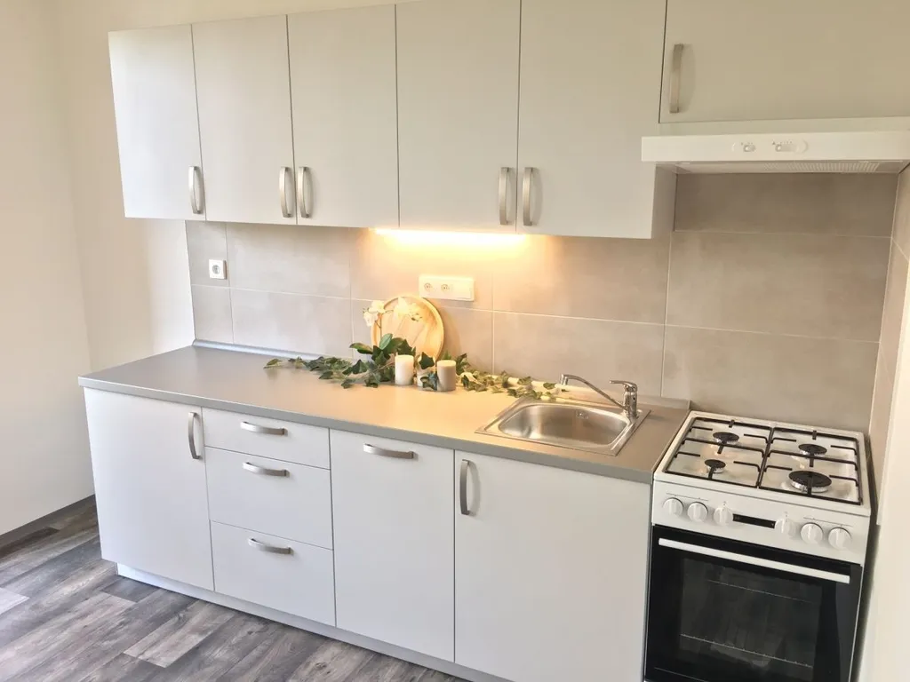 Kuchyňská linka je opatřena plynovým sporákem a elektrickou troubou s možností připojení myčky.