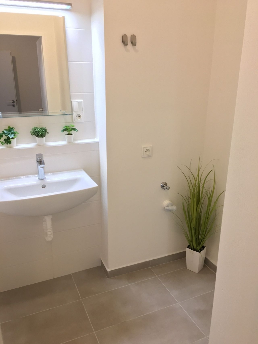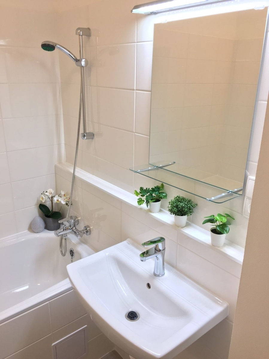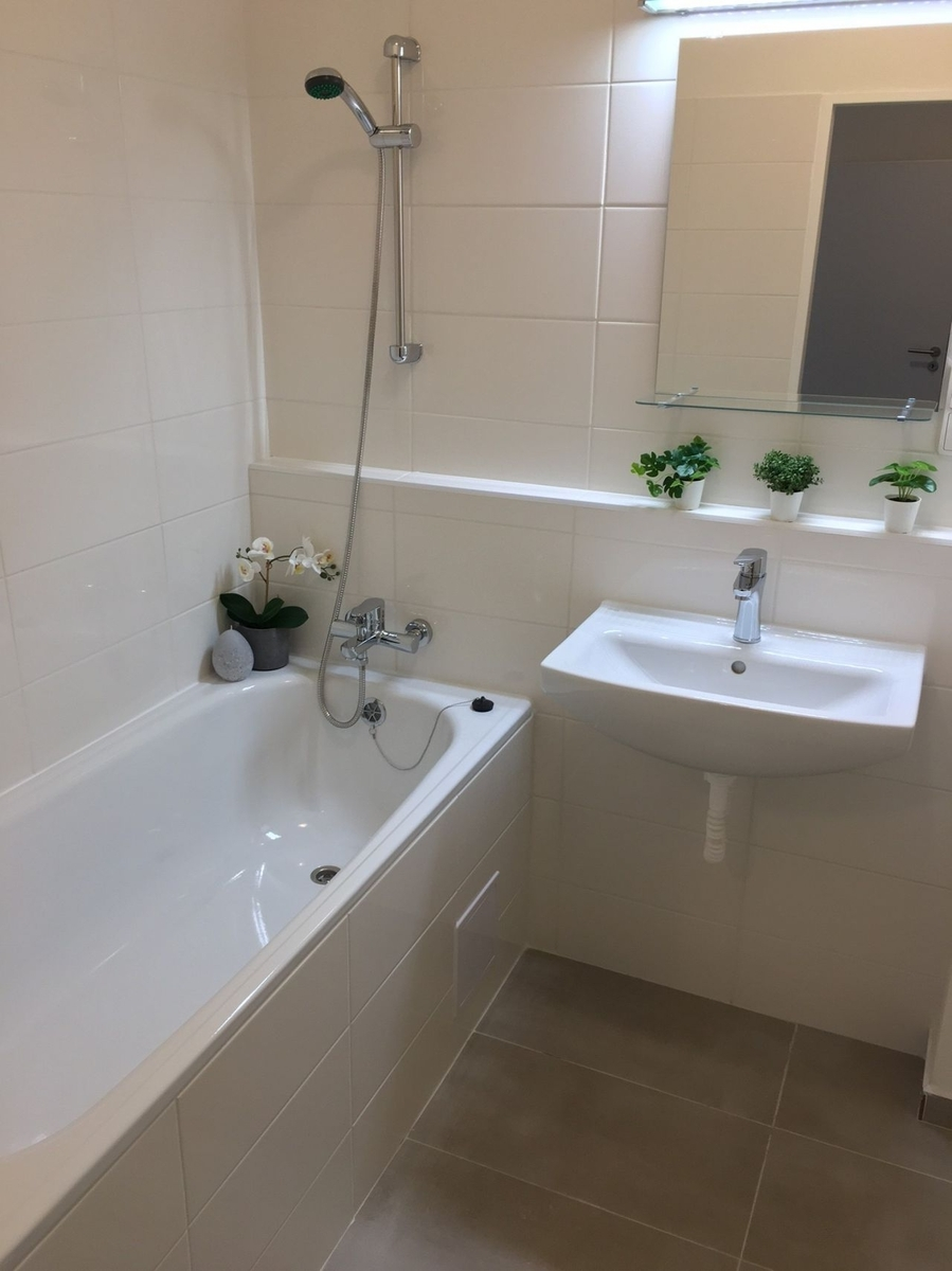 Byt má vyzděné jádro, nové podlahy, rozvody, omítky, nové interiérové dveře. Koupelna s vanou a umyvadlem s možností připojení pračky, toaleta je odděleně.