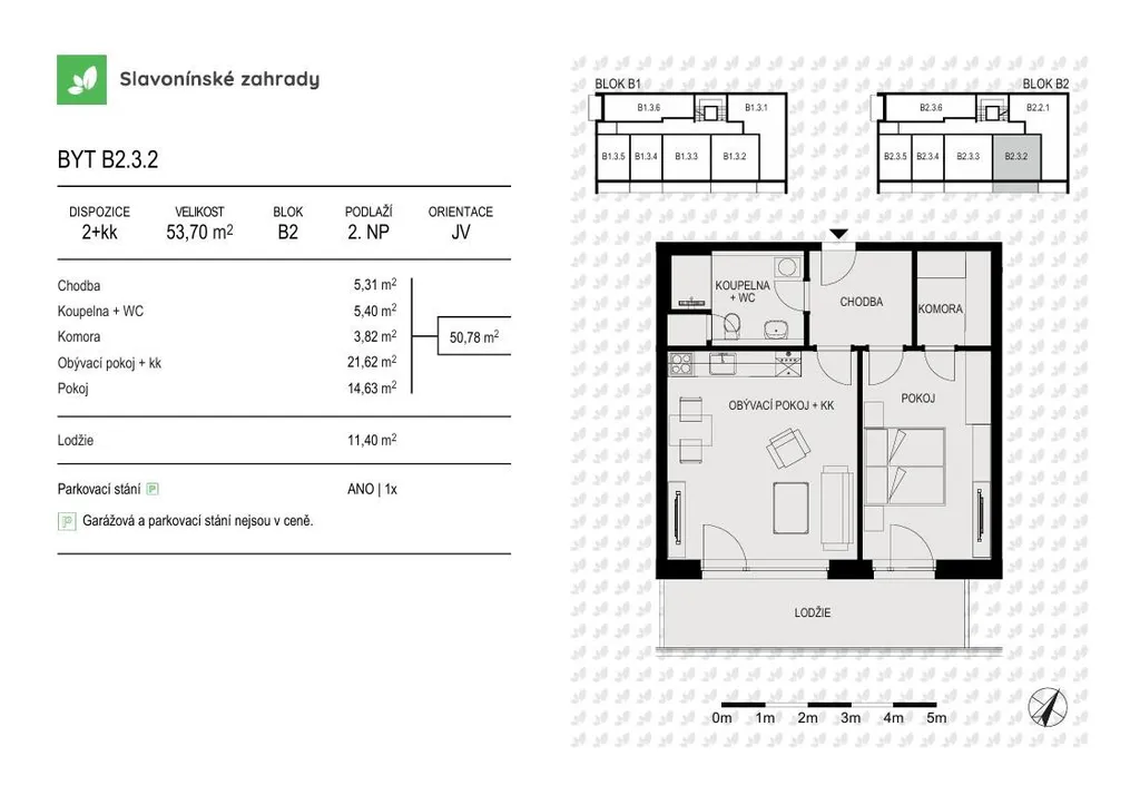 Nabízíme prostorný byt s označením B2.3.2 o dispozici 2+kk, podlahové ploše 53,68 m2 v 3. NP, s balkónem 11,4 m2 ideální pro páry nebo jako investiční bydlení.