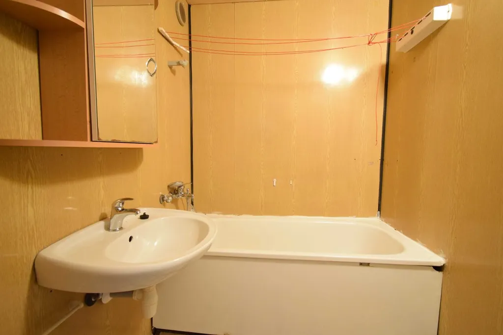 Byt se nabízí částečně vybavený. Kuchyně disponuje lednicí, elektrickou troubou a sporákem a digestoří. V předsíni je vestavěná skříň, věšák, zrcadlo a odkládací stolek. V koupelně je vana a umyvadlo. Toaleta je umístěna samostatně.