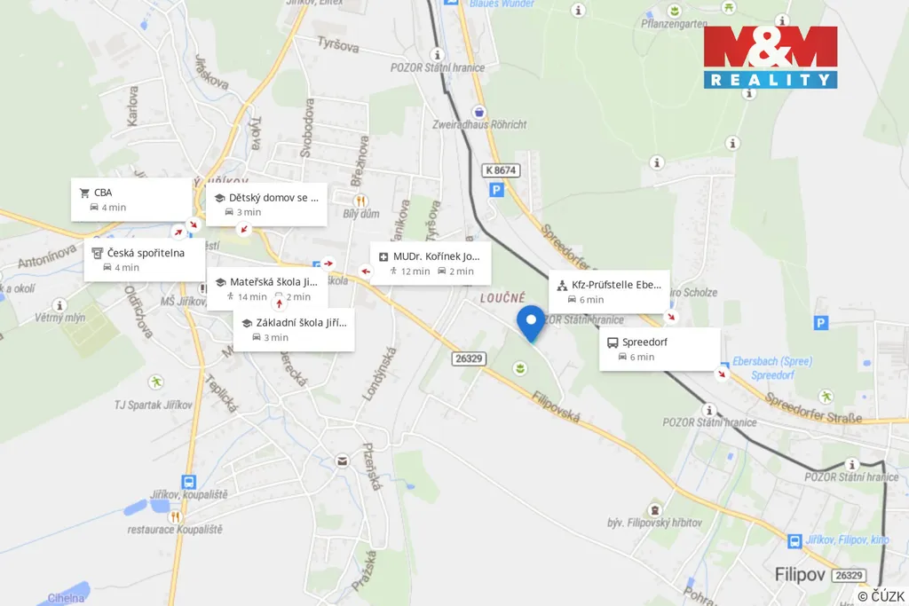 Nabízím stavební pozemek o výměře 550 m² v Jiříkově s přímým přístupem z veřejné příjezdové cesty. Inženýrské sítě jsou připravené: elektrická i plynová skříň jsou na pozemku, voda a kanalizace jsou vedené pod příjezdovou komunikací a stačí pouze vybudovat přípojky. Pozemek je dle územního plánu určen k výstavbě rodinného domu. Lokalita má výbornou dostupnost, do Rumburku je to 6 kilometrů, do Děčína 34 kilometrů a do Liberce 42 kilometrů. Jiříkov se nachází u hranic s Německem, což zvyšuje hodnotu a možnosti budoucího využití. Na pozemku již proběhly terénní úpravy a plánují se další stavební přípravy. Jde o atraktivní příležitost pro rychlý start výstavby v klidné a dobře dostupné lokalitě. Pokud Vás nabídka zaujala, neváhejte kontaktovat realitního makléře. S financováním Vám pomůže naše hypocentrum.