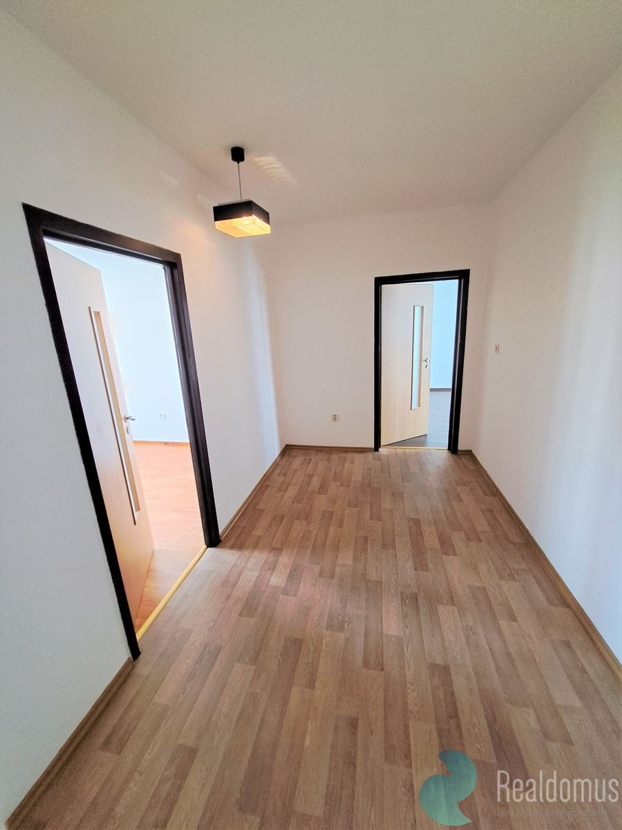 Disponuje vstupní chodbou s halou. Kuchyní s novou, pěknou kuchyňskou linkou (na fotografii chybí nová digestoř a úprava prostoru za kuch. linkou). Dále pak prostorným obývacím pokojem se vstupem na lodžii. A dalšími dvěma pokoji, které jsou neprůchozí. Koupelna je s vanou a samostatnou toaletou (nové podlahy a polepy stěn).