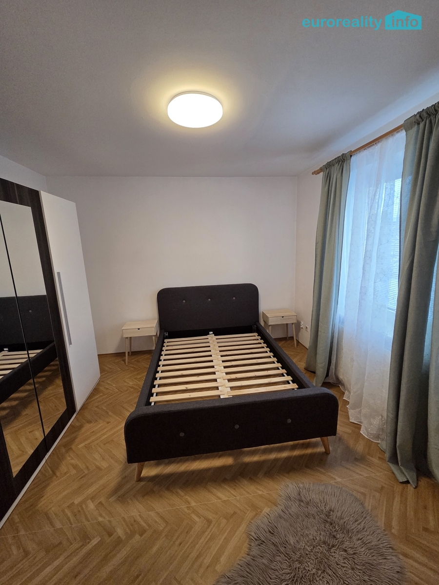 Kuchyně je vybavena kuchyňskou linkou, elektrickým sporákem, lednicí, barovou sestavou. Ložnice velkou šatní skříní, manželskou postelí (bez matrací). Zděná koupelna pračkou a vanou. WC je samostatné. Okna jsou orientována na východní stranu, díky čemuž je byt příjemně prosvětlený ranním sluncem.