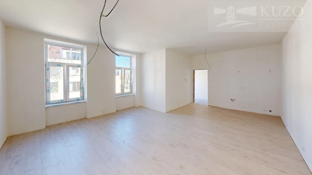 (Kromě této jednotky jsou v domě k dispozici už jen poslední dva podkrovní byty s přiznanými trámy.)