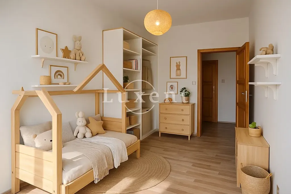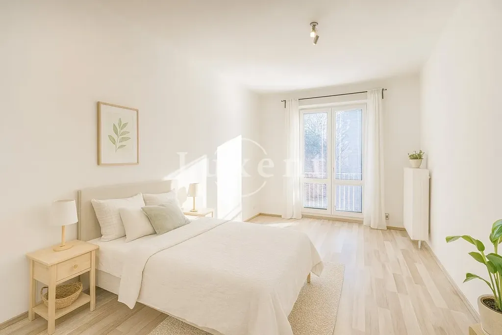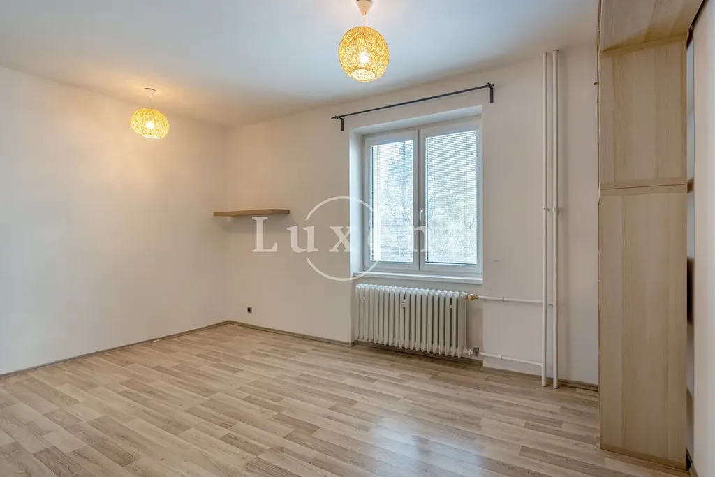 Bytová jednotka nabízí praktickou dispozici 3+kk, která zahrnuje obývací pokoj s kuchyňským koutem, dvě samostatné ložnice, koupelnu se sprchovým koutem, oddělenou toaletu a vstupní chodbu. Orientace oken zajišťuje dostatek denního světla a příjemnou atmosféru po celý den. K bytu náleží také sklepní kóje.