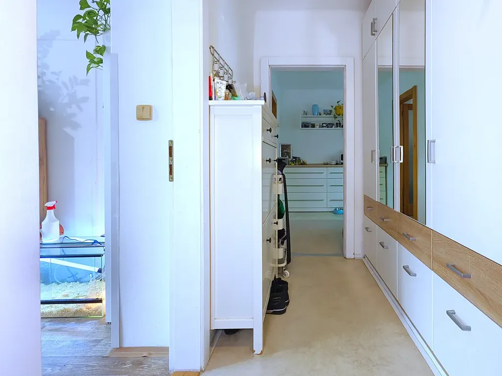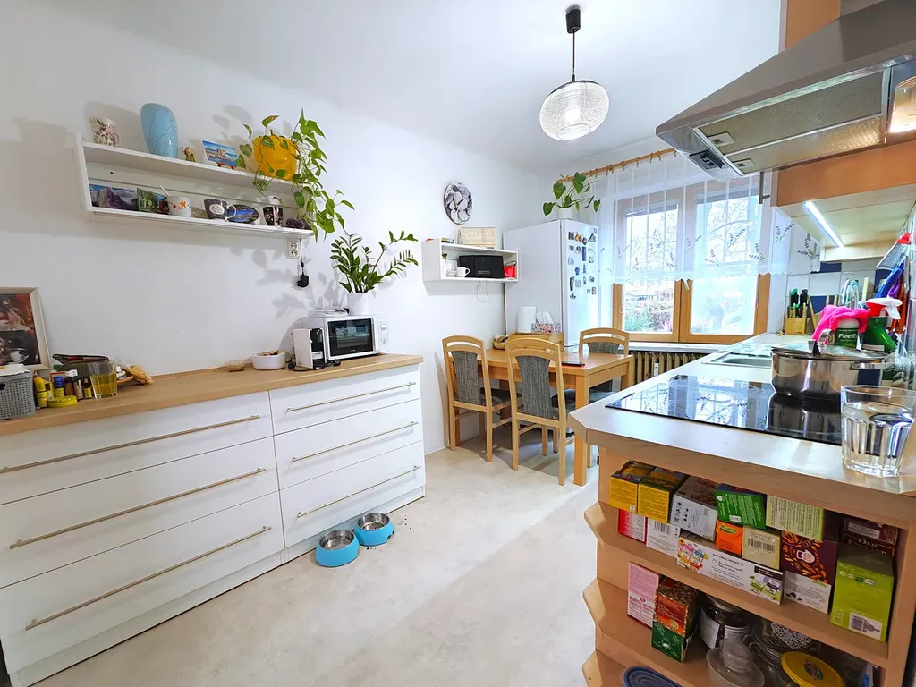 BYT 2+1 má plochu 64,65 m2 včetně dvou sklepů. Samotný byt má čistou podlahou plochu 51 m2 a nachází se v 1. NP. (zvýšené přízemí) cihlového domu z roku 1955. Patří k němu 2 sklepy v suterénu domu. Orientace oken je na východ a západ, do zeleně. V bytě probíhala v posledních dvaceti letech postupná rekonstrukce – nová dřevěná euro okna, nové podlahy a obklady, elektřina, dveře a zárubně. Byt má velmi příjemné dispozice, se kterými se dá v případě potřeby dále pracovat díky cihlové konstrukci celé stavby. Dům je klidný, s příjemnými sousedy (ve vchodě jsou jen 4 byty).