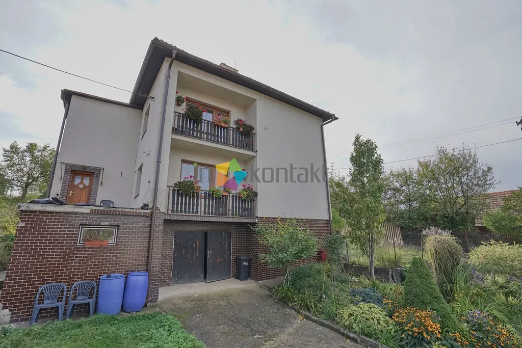 Součástí prodeje je samostatně stojící zděná garáž (41 m²) s podkrovím pod sedlovou střechou.