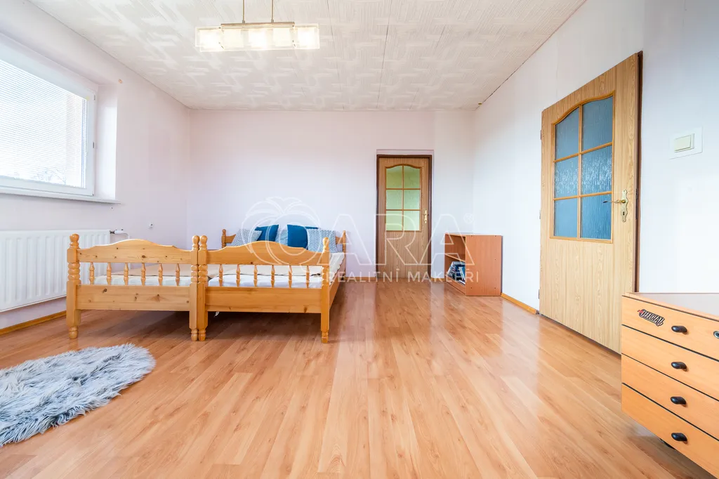 - v patře - 4 +1 - obytné plochy 120 m2 - chodba, obývací pokoj, ložnice, pokoj s šatnou, další pokoj, kuchyň, koupelna se vanou i sprchou + WC,