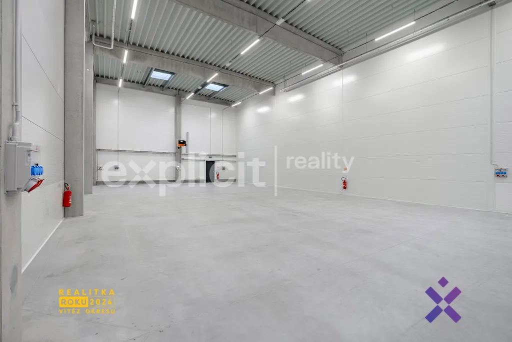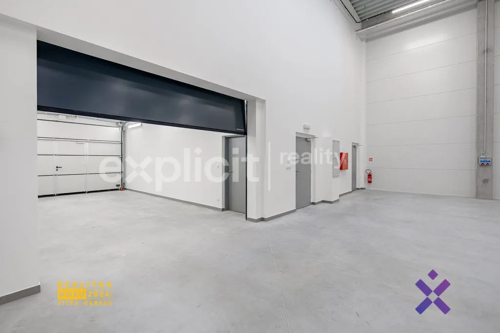 Prostory jsou vybaveny dostatečným množstvím elektrických zásuvek pro flexibilní uspořádání pracoviště i technologií. Hala disponuje elektricky ovládanými sekčními vraty, která zajišťují pohodlný a efektivní provoz.