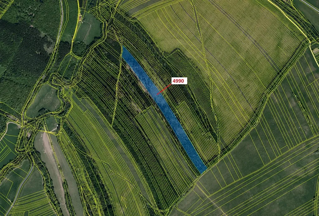 Lesní pozemek o výměře 35 849 m2, parcelní číslo 4990, podíl 1/1, katastrální území Bojkovice, obec Bojkovice, obec s rozšířenou působností Uherský Brod, okres Uherské Hradiště, Zlínský kraj. Po těžbě.