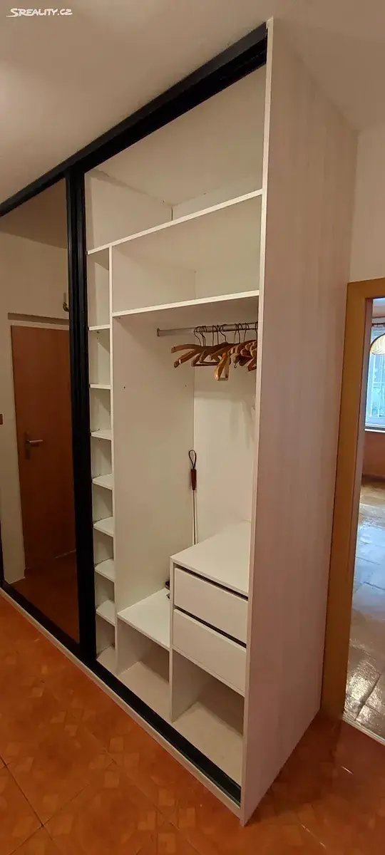 vnitřní dveře a vestavěné zrcadlové skříně v chodbě (úložný prostor – spíž a