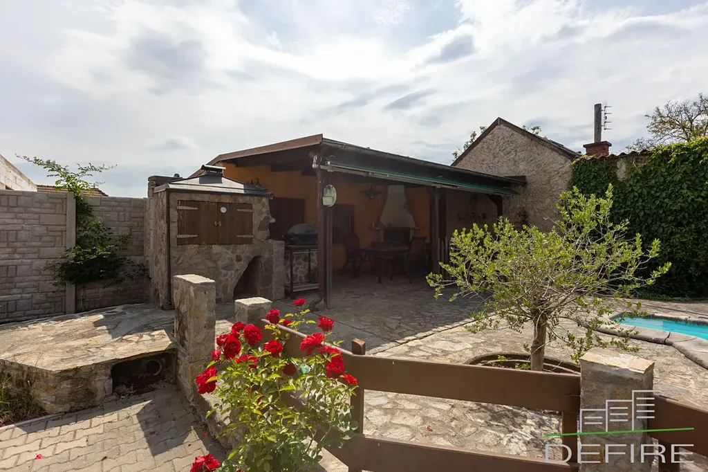 Nemovitost se nachází na vlastním pozemku o celkové výměře 850 m2, Za domem je prostor zahrady s vlastním vjezdem na pozemek. Na zahradě je zapuštěný letní bazén, prostory pro parkování, velká dílna, na kterou navazuje venkovní pergola s krbem pro grilování a udírnou. Toto zákoutí je doplněno venkovním posezením. Zahrada se v současnosti využívá společně s bytovou jednotkou pro soukromé účely.