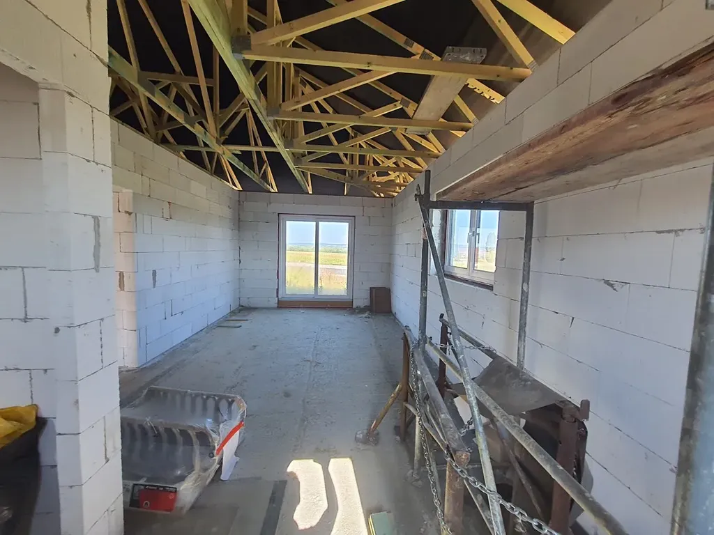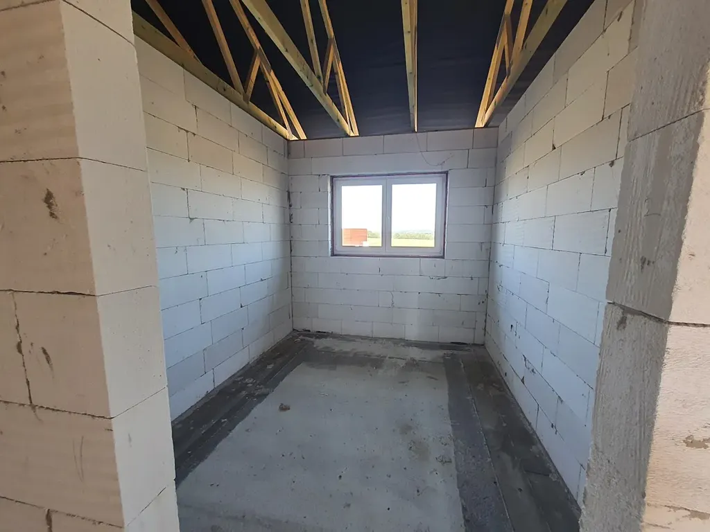 Nabízíme k prodeji rozestavěný menší rodinný dům s pozemek s projektem o velikosti 3+kk ve vyhledávané městské části Chebu – Zlatá louka. Zastavěná plocha – 145 m2. Celková užitná plocha 117, 49 m2. Objekt je postaven na pozemku o výměře 901 m2 v okrajové části Chebu, na rohu ulic Topolová a Dolnická. Objekt je postaven z plynosilikátových tvárnic. Dispozice domu obývací pokoj s kuchyňským koutem, spíž, 2x pokoj, chodba, zádveří, technická místnost, WC, koupelna a garáž (29,77, m2). Objekt je napojen na městský vodovod a kanalizaci a elektřinu. Vedle domu se nachází autobusová zastávka. Bližší info v RK. PENB třída G.